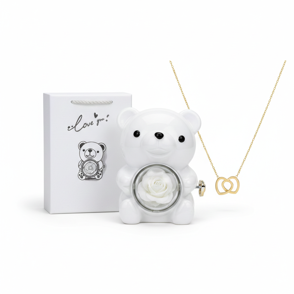 Diseño del joyero: Oso decorativo con rosa eterna giratoria